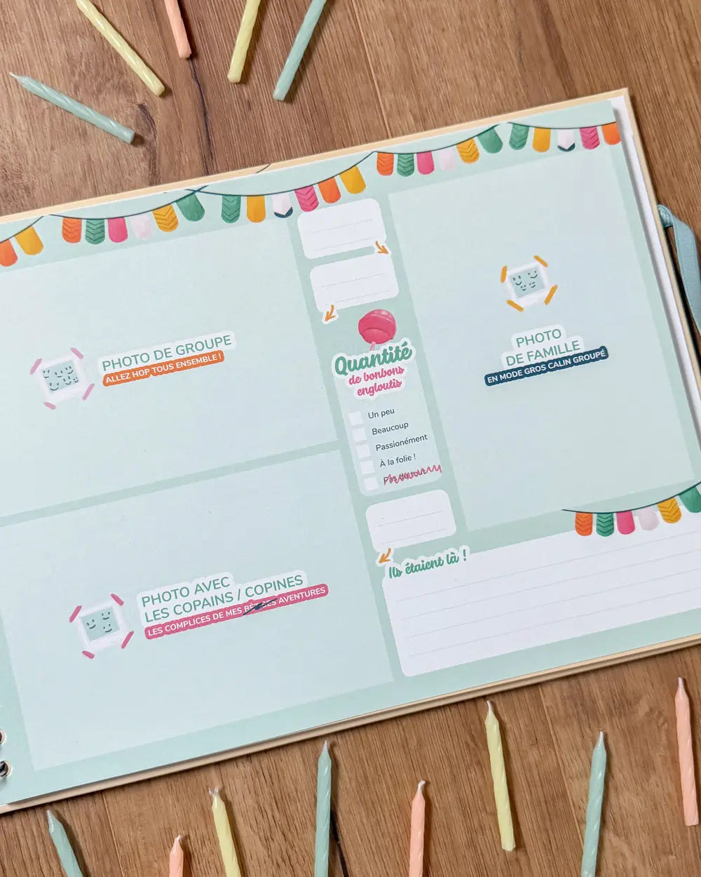 Un album solide, coloré et festif de 86 pages, conçu pour collecter les meilleurs souvenirs des anniversaires de votre enfant :